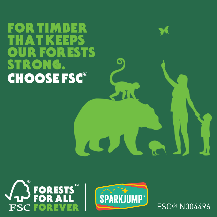 SparkJump is excited to partner with the #1 leader in sustainable forestry, the Forest Stewardship Council (FSC). We are proud to only use lumber that has been 100% FSC certified.
