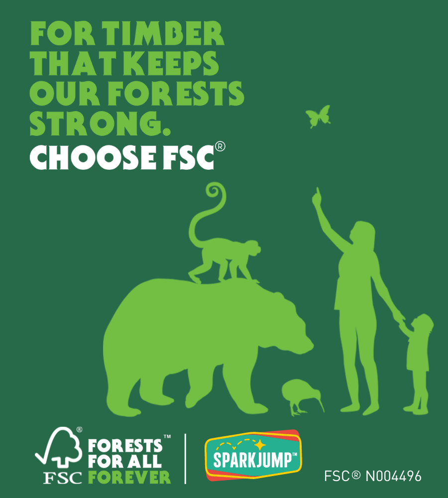 SparkJump is excited to partner with the #1 leader in sustainable forestry, the Forest Stewardship Council (FSC). We are proud to only use lumber that has been 100% FSC certified.